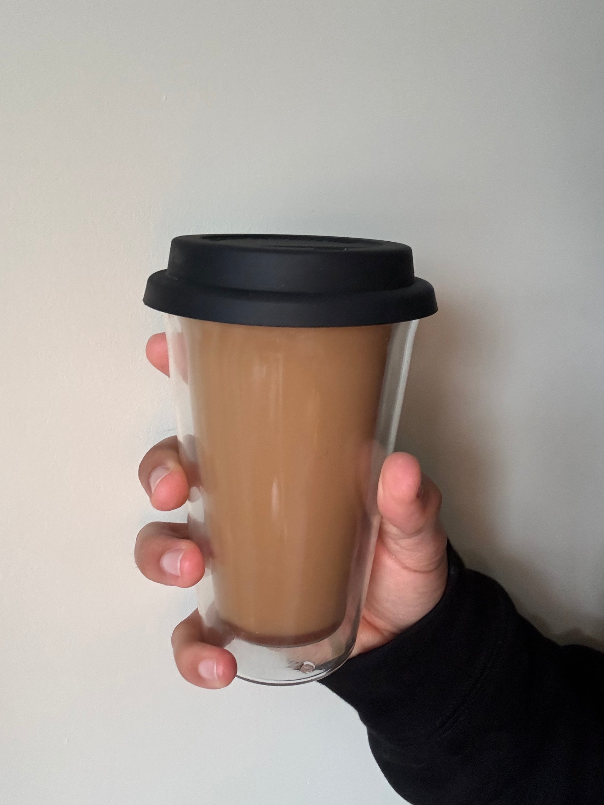 Our cup is crafted from durable, non-toxic borosilicate glass with a food-grade, BPA-free silicone lid. It's a completely plastic-free and eco-friendly alternative to typical takeaway cups, designed to protect your health and the environment.