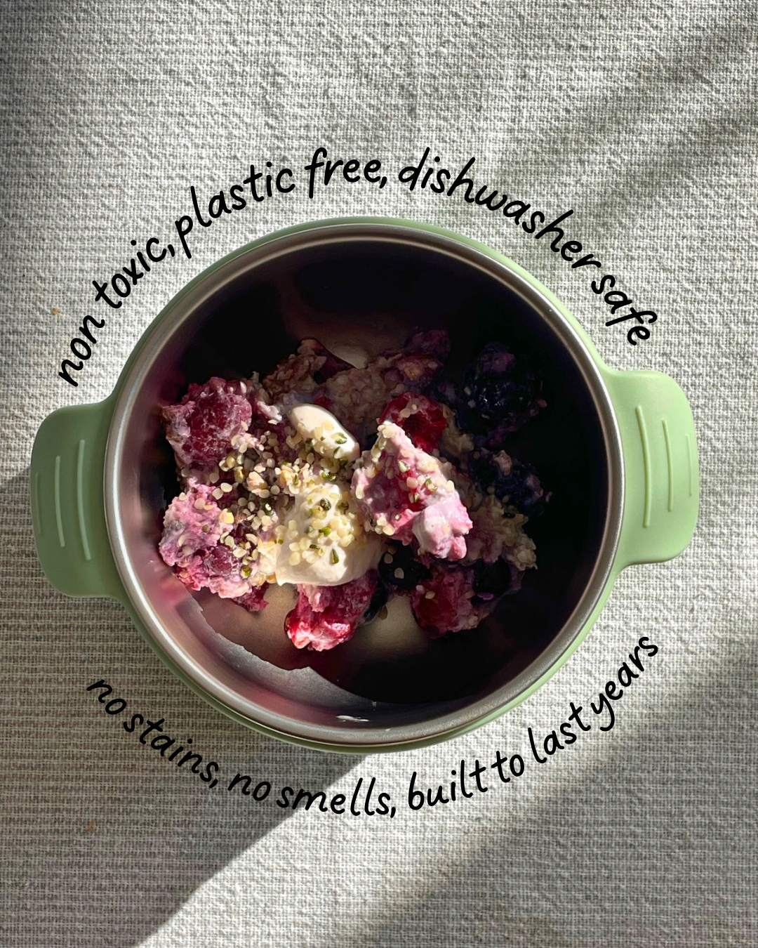 Our plates are crafted from 100% pure, food-grade 304 stainless steel. They are completely plastic-free, with zero coatings or dyes, ensuring a clean and low-tox solution for safe food exposure for your children.